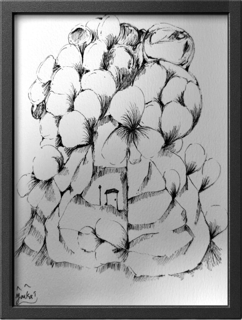 〇 溶界 作 原画・ポストカード紙 ※写真の撮影上、色が変わって見えてしまっていますが、白黒です。