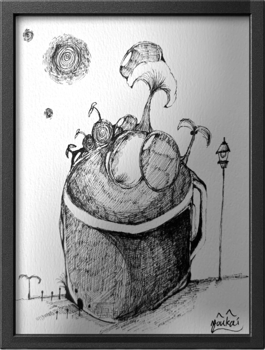 〇 By Yōkai: Original Artwork / Postcard Paper *Please note: Due to photography, the colors may appear different, but this is a black-and-white piece.