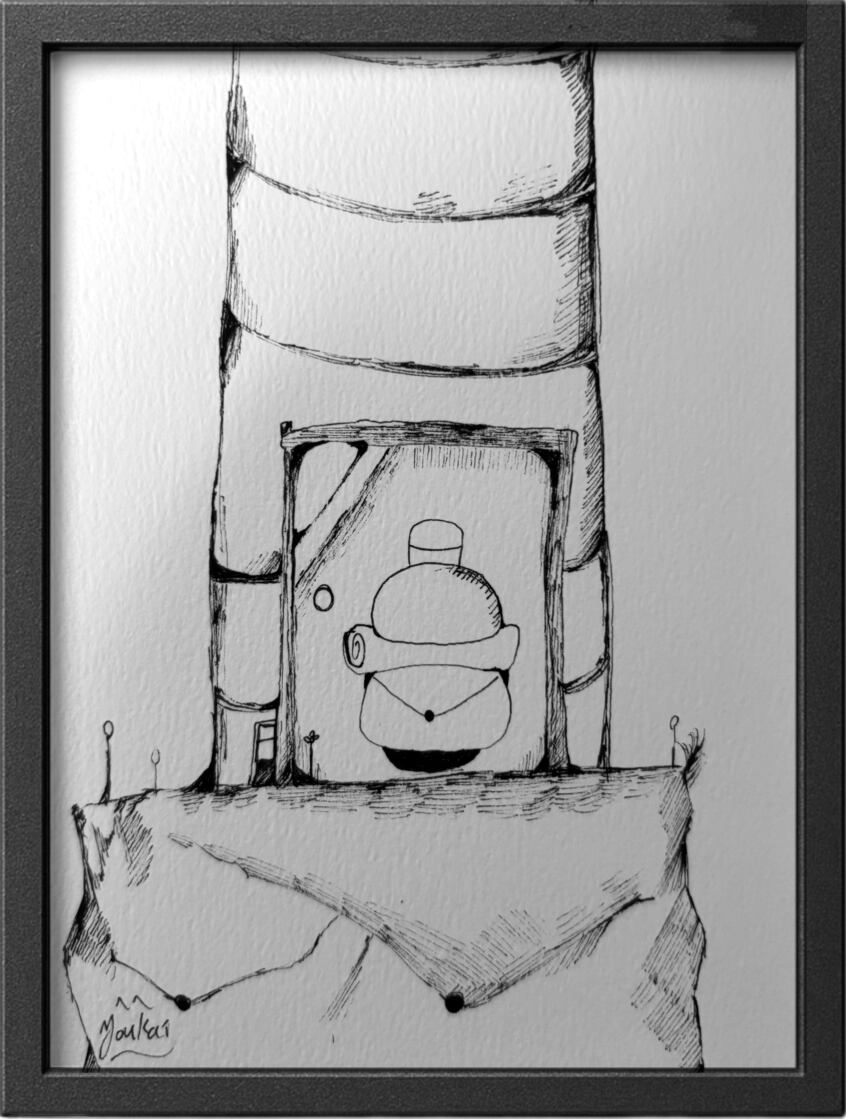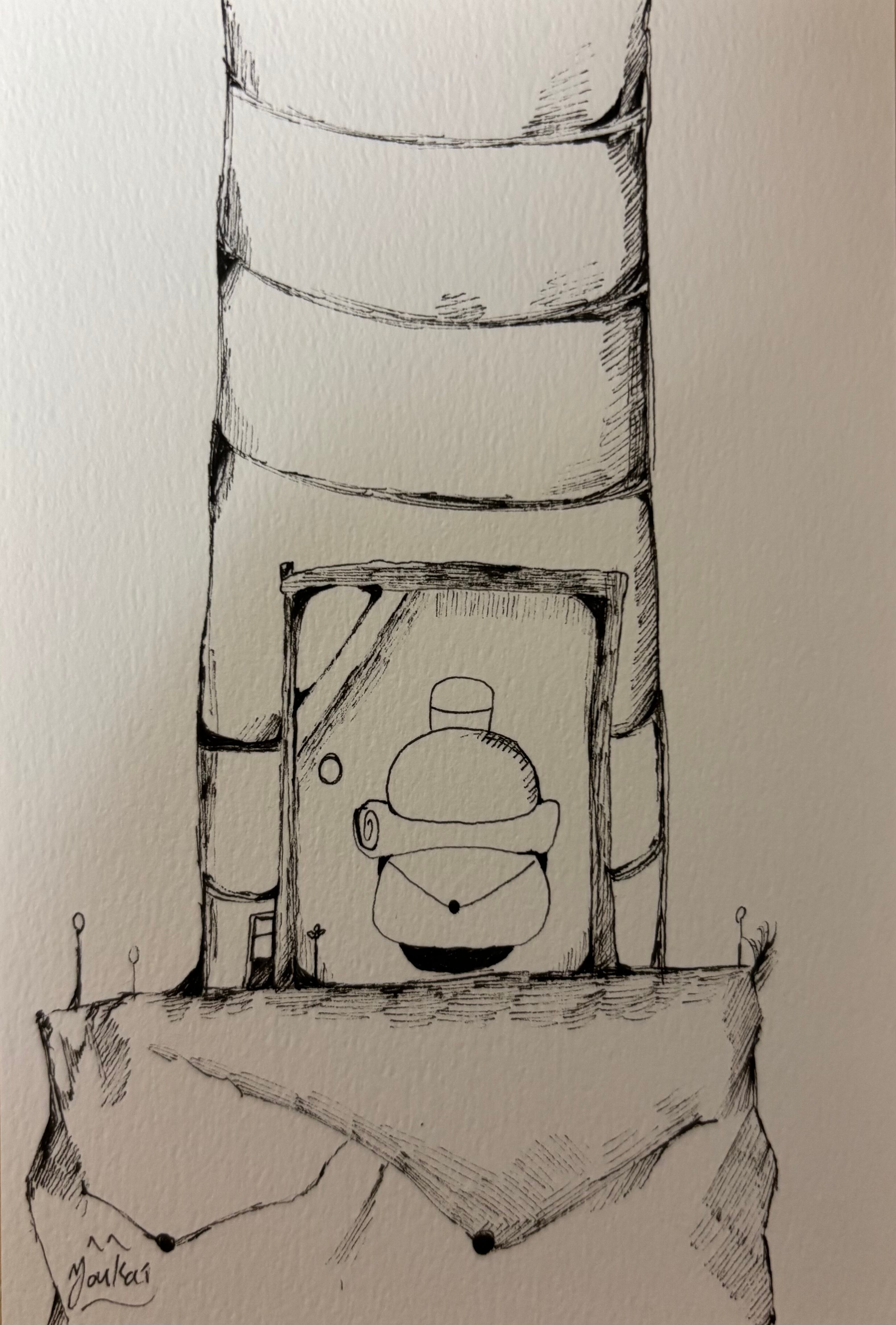 〇 溶界 作 原画・ポストカード紙 ※写真の撮影上、色が変わって見えてしまっていますが、白黒です。
