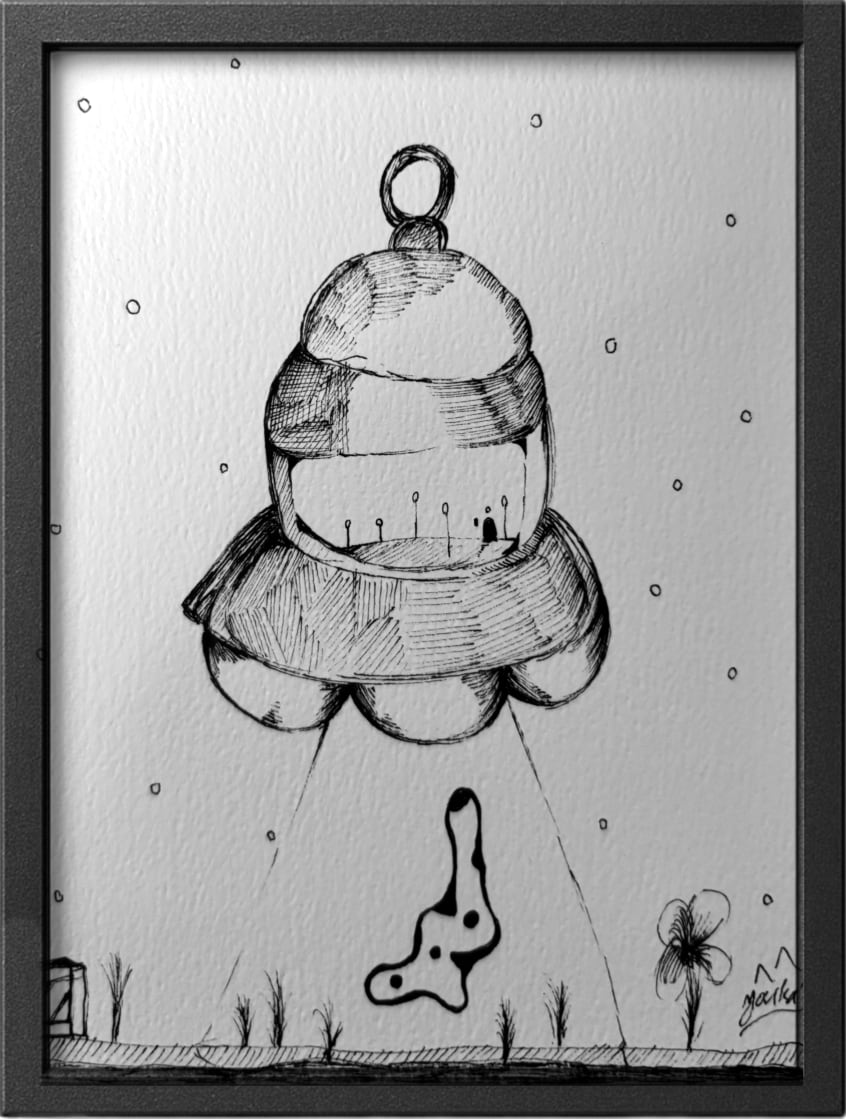 〇 溶界 作 原画・ポストカード紙 ※写真の撮影上、色が変わって見えてしまっていますが、白黒です。